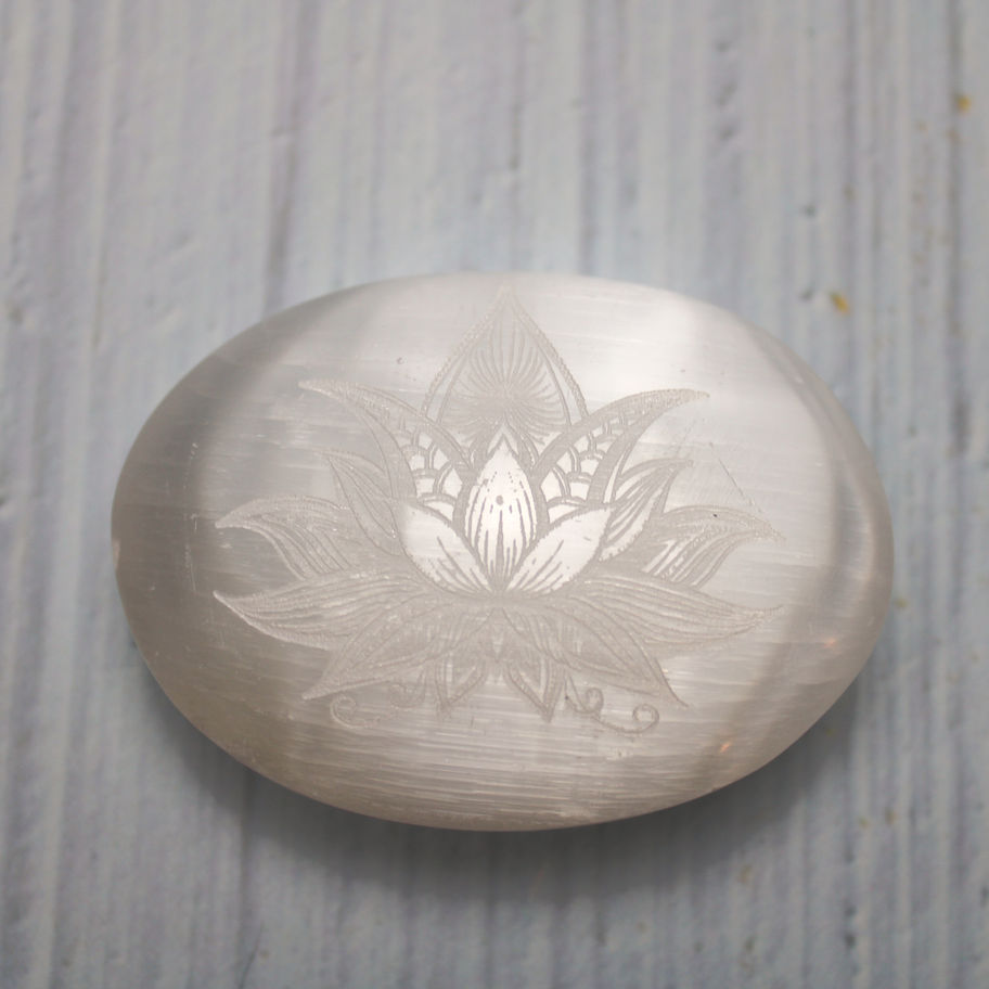 Enhance your spiritual practices with the Lotus Flower Etched Selenite Palm Stone. This beautifully crafted piece combines the serene energy of selenite with the symbolic purity of the lotus flower, making it perfect for meditation and energy cleansing. Our business is dedicated to providing high-quality, ethically sourced crystals that align with your holistic wellness journey. Each palm stone is expertly etched to feature the lotus flower, ensuring both aesthetic appeal and spiritual significance. Discover the calming and balancing benefits of selenite through this exquisite piece.